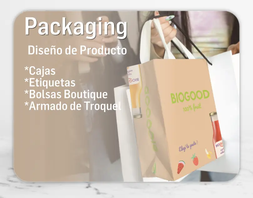 Diseño de producto, bolsas, cajas, etiquetas, y más.